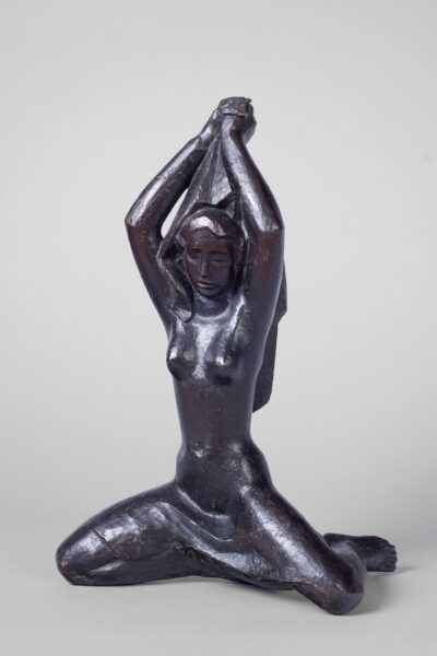 Edwin Scharff im Atelier an der Hockenden arbeitend